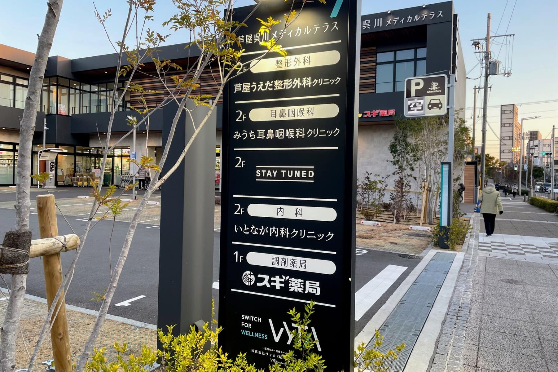 ↑1階にドラッグストア・調剤薬局の「スギ薬局」があるほか、2階では「芦屋うえだ整形外科クリニック」、「みうち耳鼻咽喉科クリニック」、「いとなが内科クリニック」が診療を行っています。