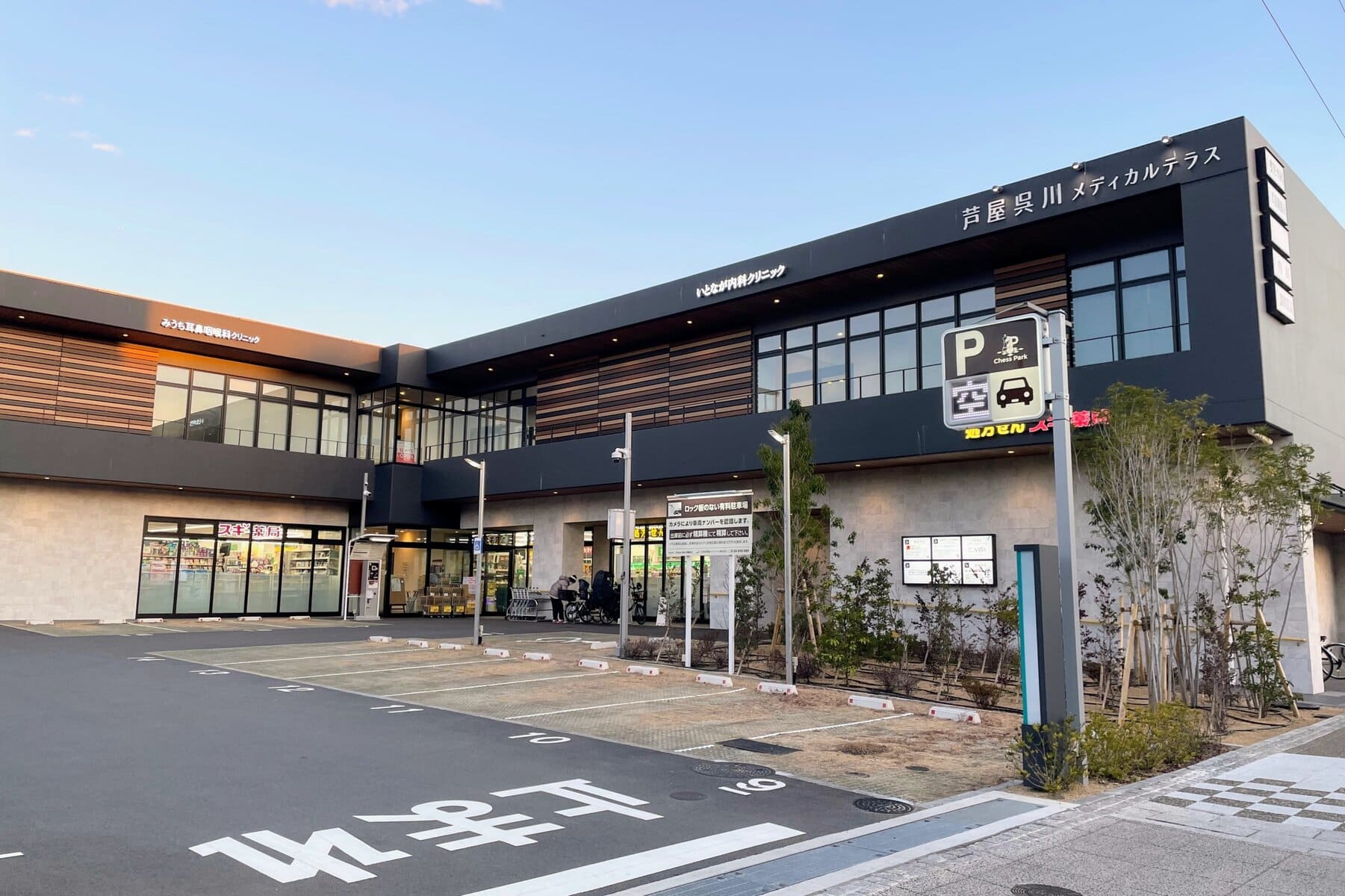 ↑「芦屋呉川メディカルテラス」の外観。以前は「宮本産婦人科医院」があった場所に昨年5月から開業した医療モールです。