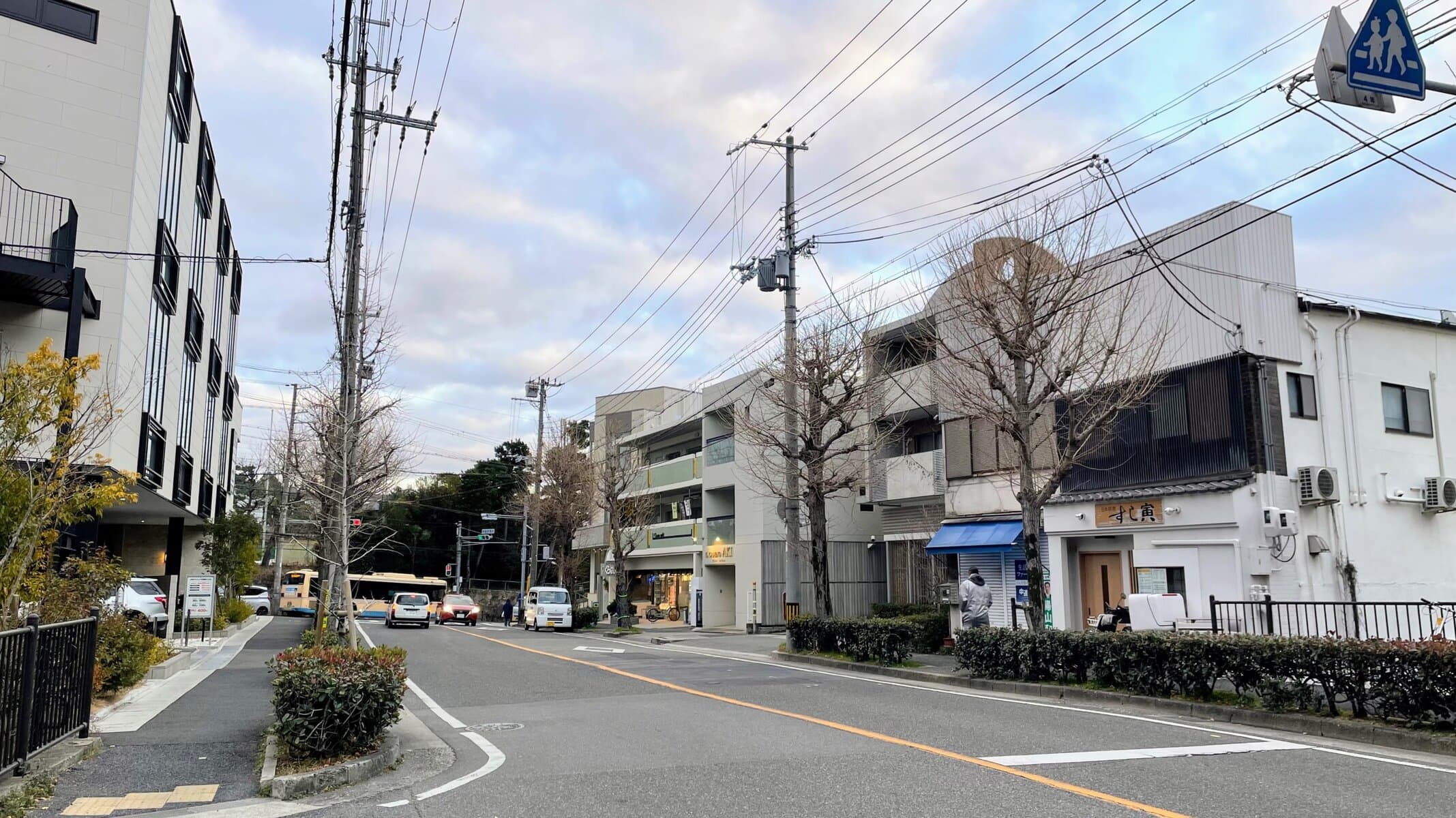 ↑反対側(西)へ行くと、「あゆみ保育園」、「コープこうべ コープミニ東山」などがあり、ずっと道なりに進むと山麓線に出ます。