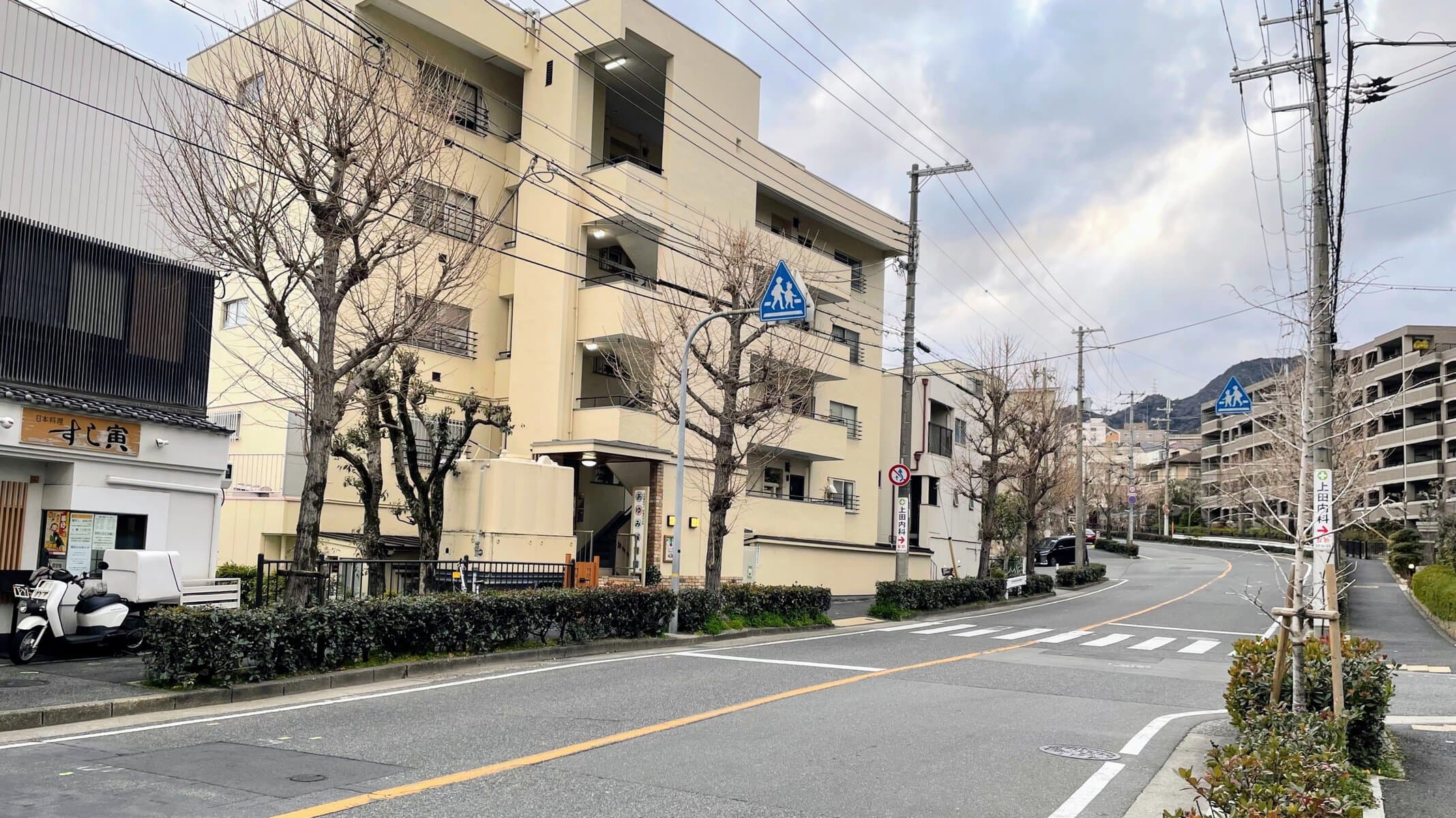 ↑向かいは、ドラッグストア「ウエルシア芦屋朝日ケ丘店」などが入る医療ビルがあります。