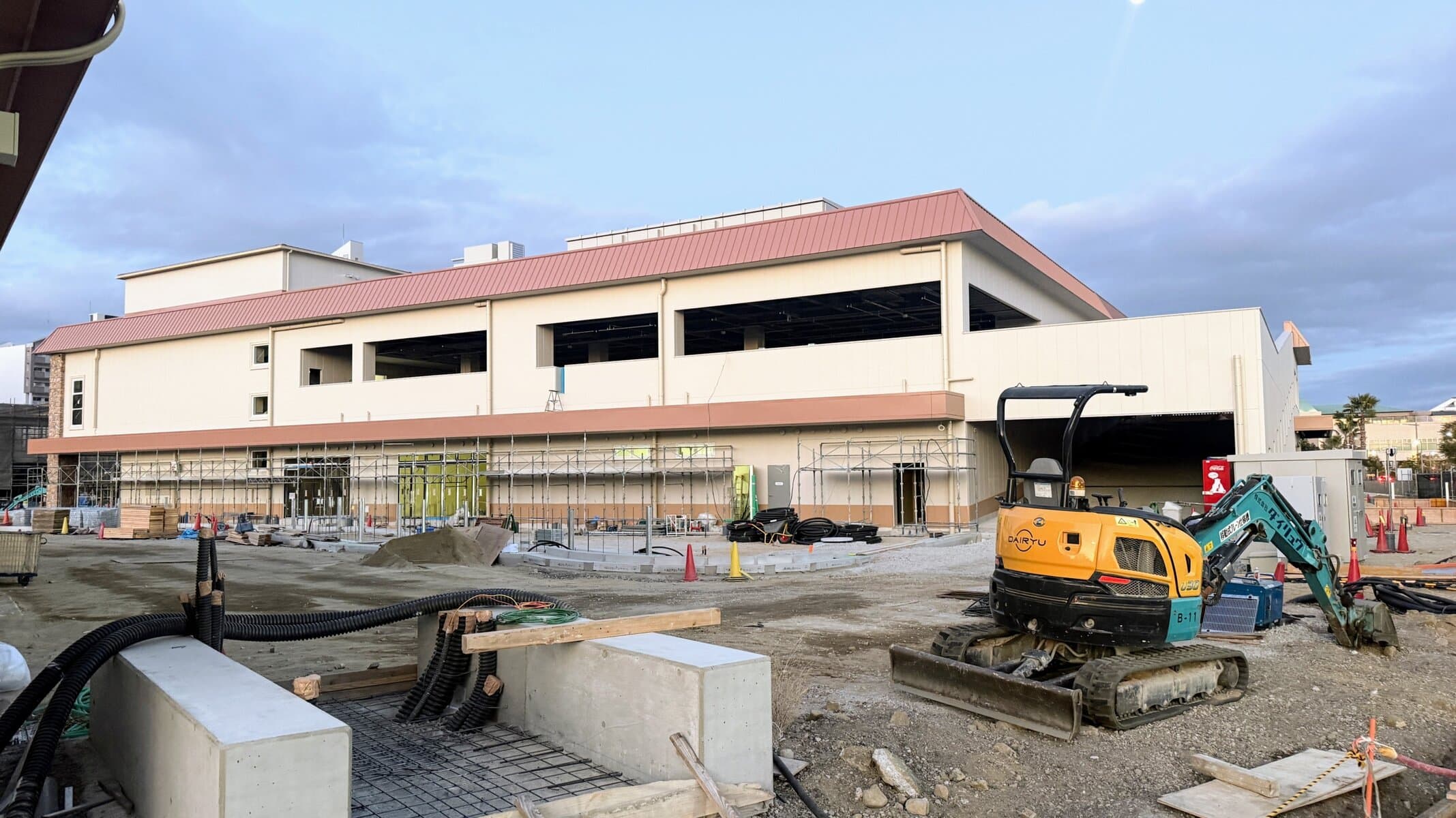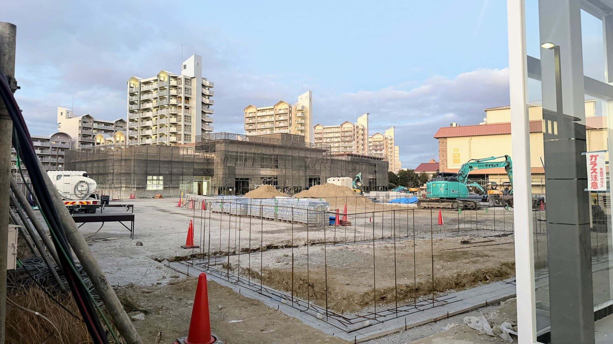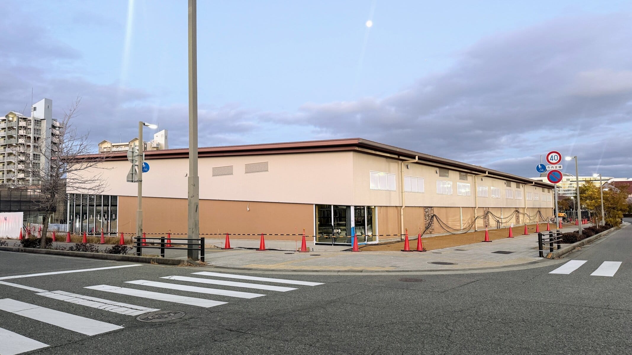 ↑建物の周りの道とか植栽とかいろいろはこれからな感じ。内装もまだでしょうね〜。