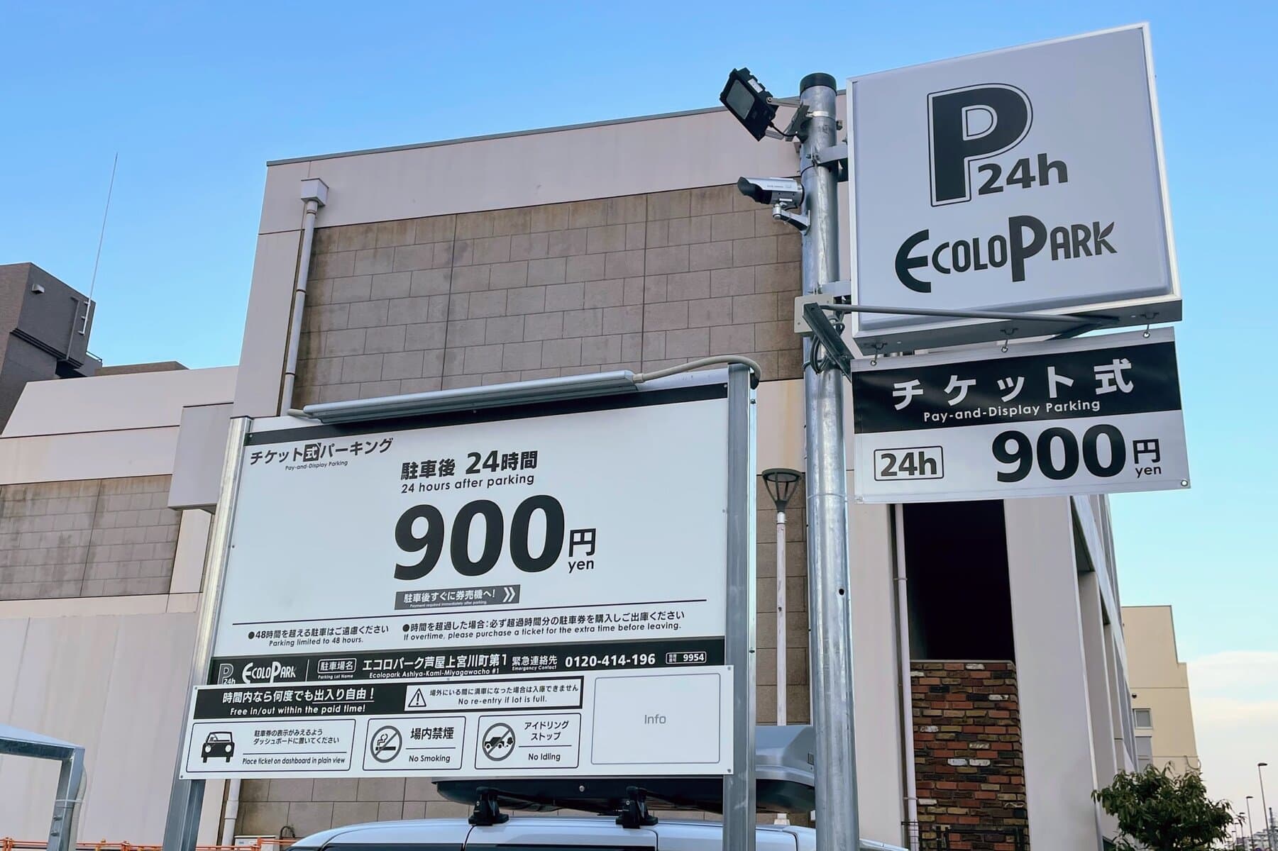 ↑駐車後すぐに券売機で900円のチケットを購入すると、24時間駐車できるチケット式駐車場となっています。時間内であれば何度でも出入り自由になるみたいですよ〜