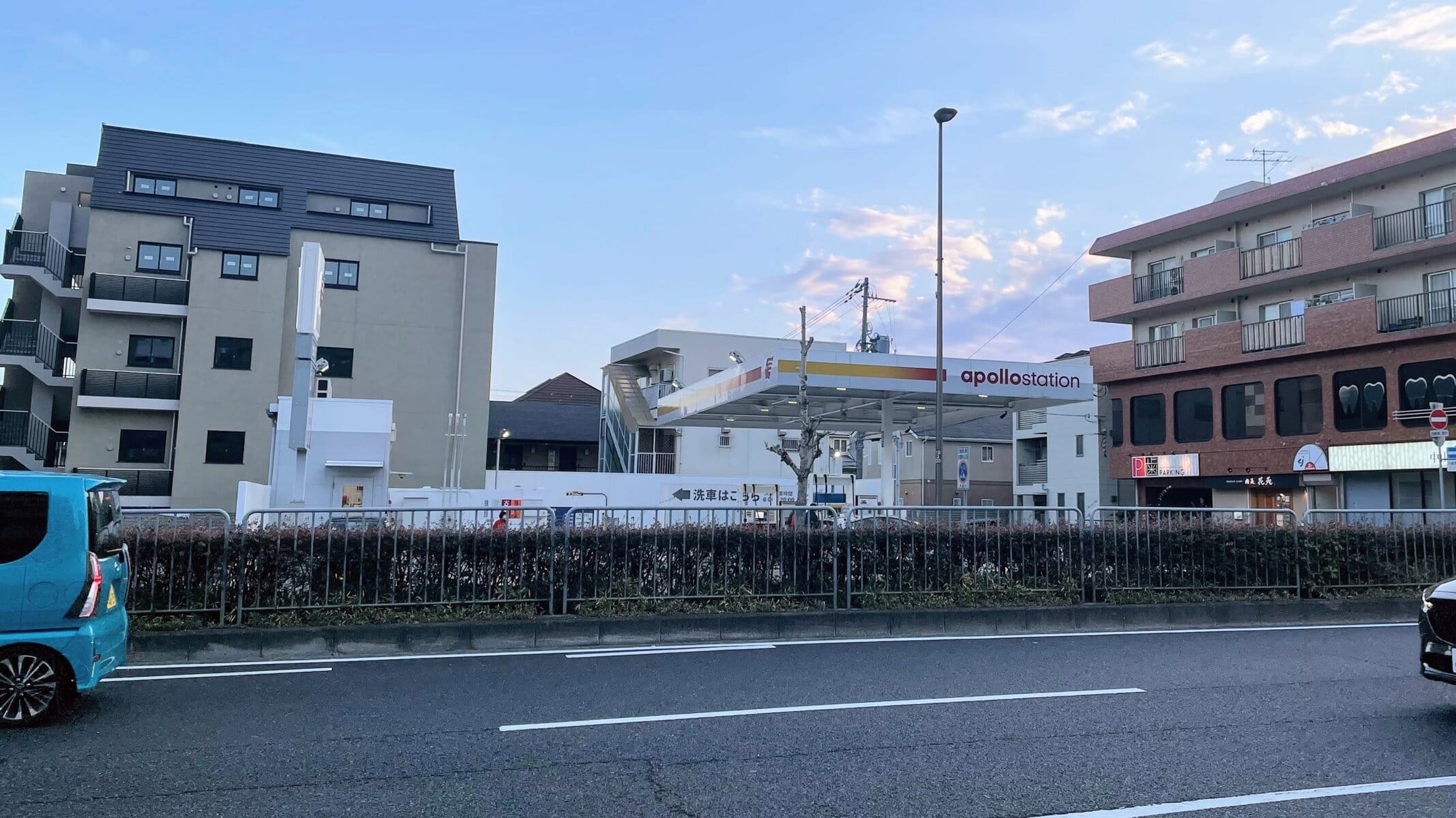 ↑向かいは、ガソリンスタンド「apollostation セルフ芦屋SS」などがあります。