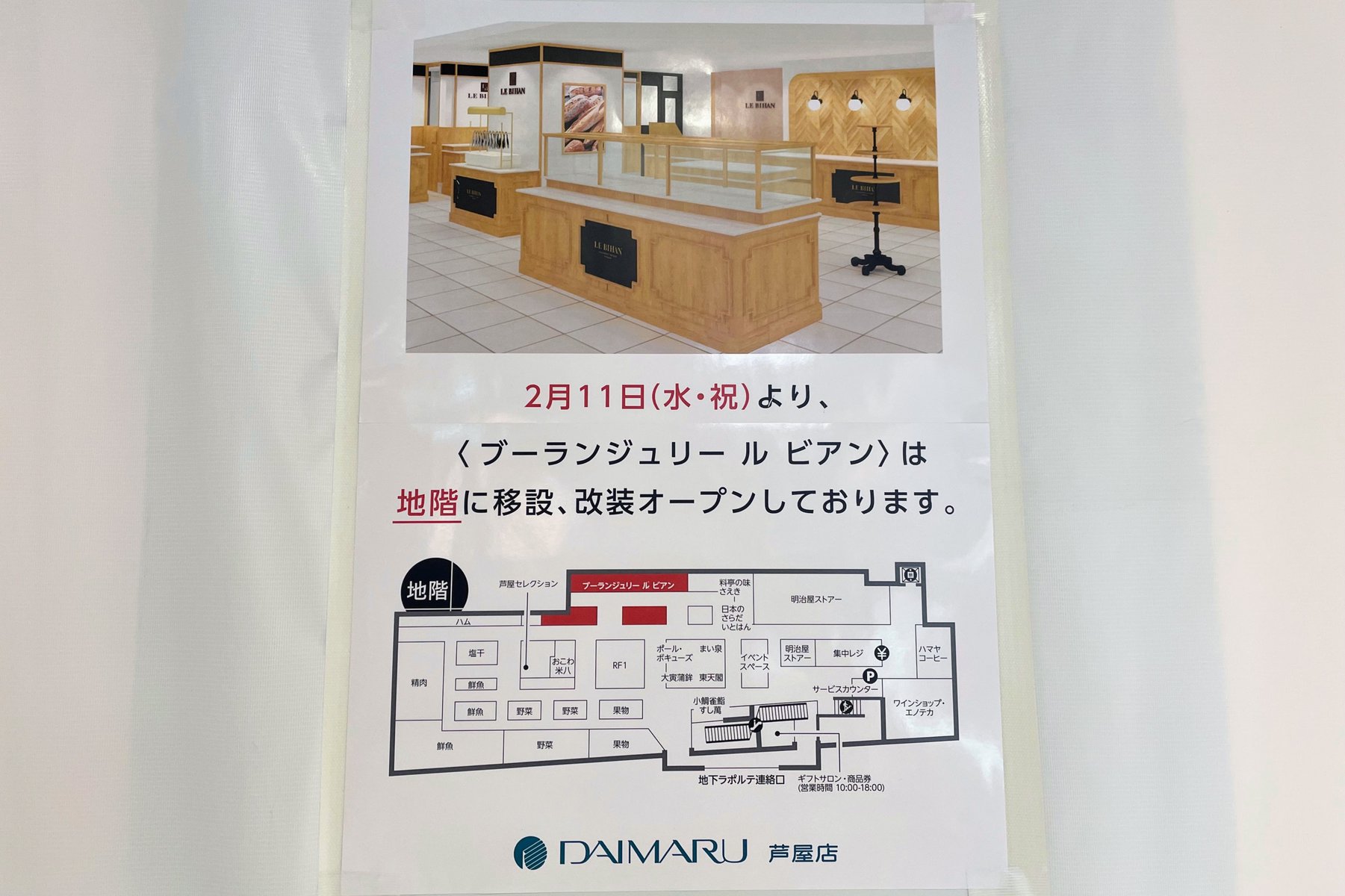 ↑以前この場所にあった「ブーランジュリー ル ビアン」は、2月11日から地階へ移転オープンしています。