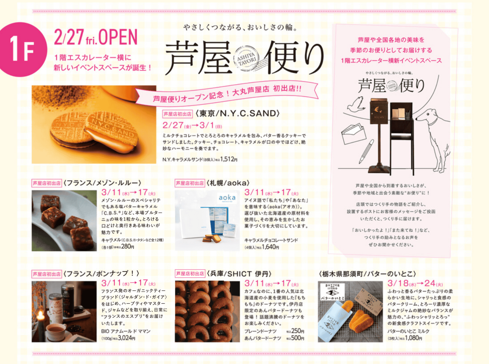 JR芦屋駅前・大丸芦屋店1階に新イベントスペース「芦屋便り」がきょう2/27(金)からオープンするみたい