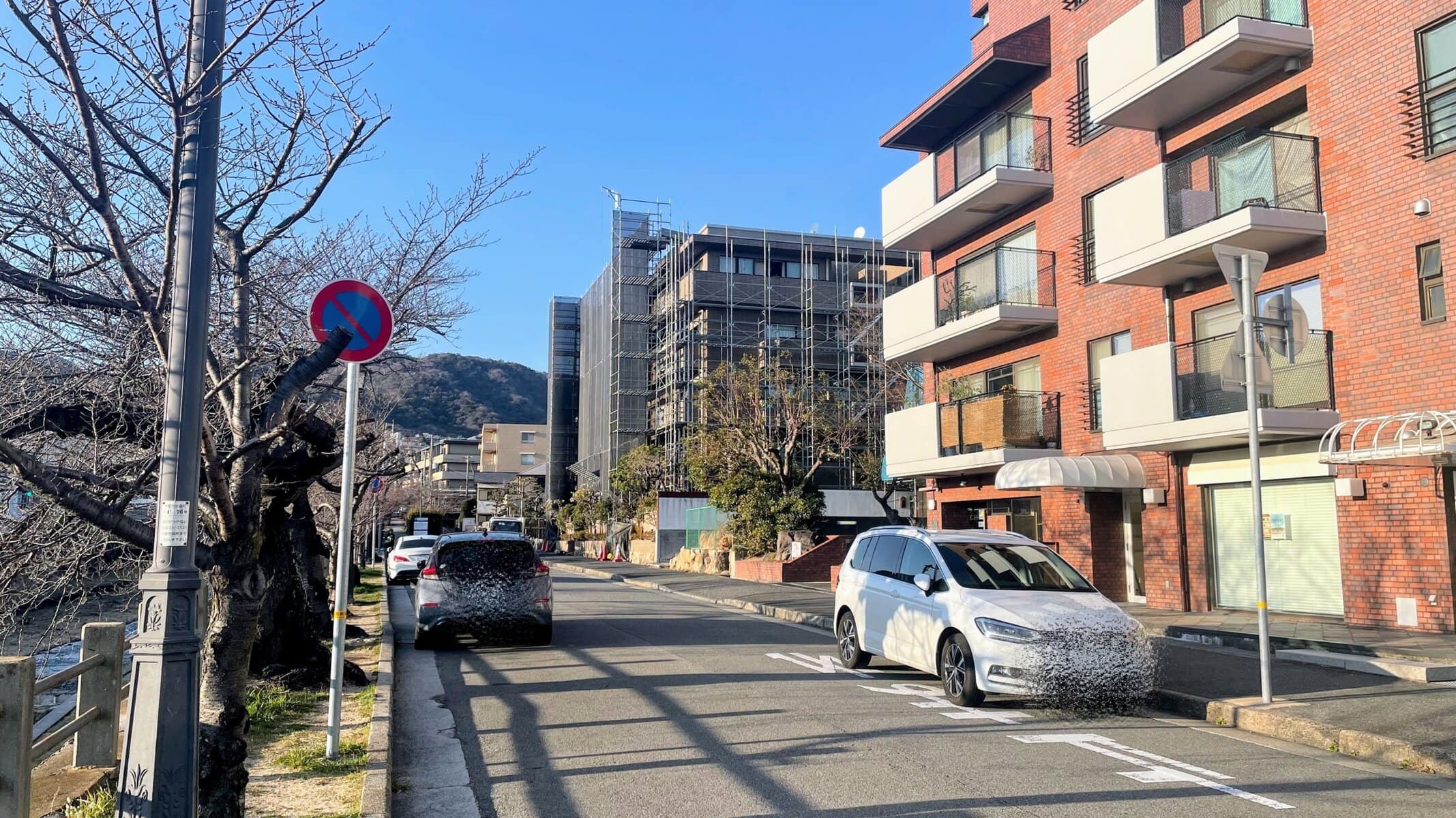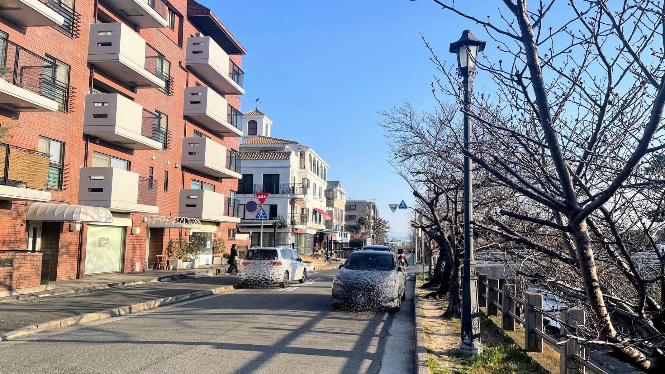 ↑業平さくら通りをこっち(北)へ行くと、阪急芦屋川駅方面です。(改札は芦屋川の向こう岸)