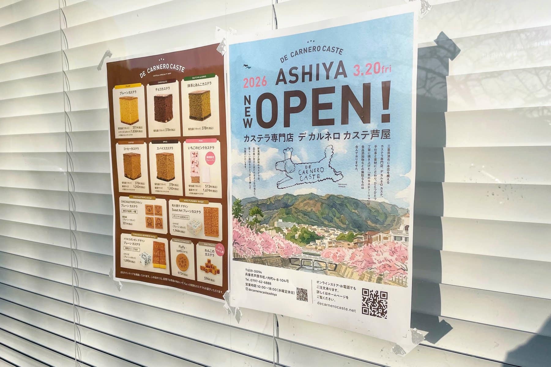 ↑オープン予定地にお知らせが貼られていました。カステラのほか、芦屋店限定で木のおもちゃなども販売予定らしいです