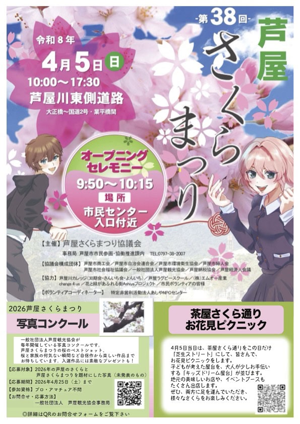 今週末4月5日(日)開催の「第38回芦屋さくらまつり」について、イベント内容の詳細が発表されています〜