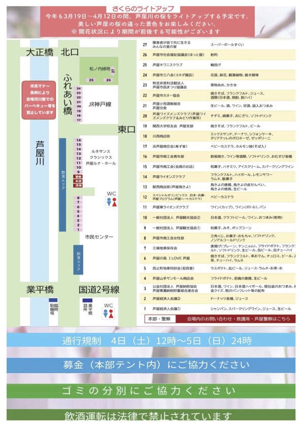 詳しい情報は芦屋市公式ホームページ/芦屋さくらまつりのページをご確認ください。