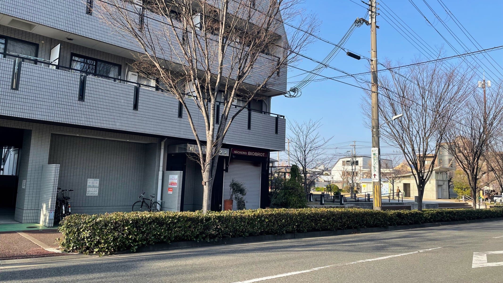↑斜向かいには、ベーカリー「ベッカライ・ビオブロート」や「宮塚公園」などがあります。