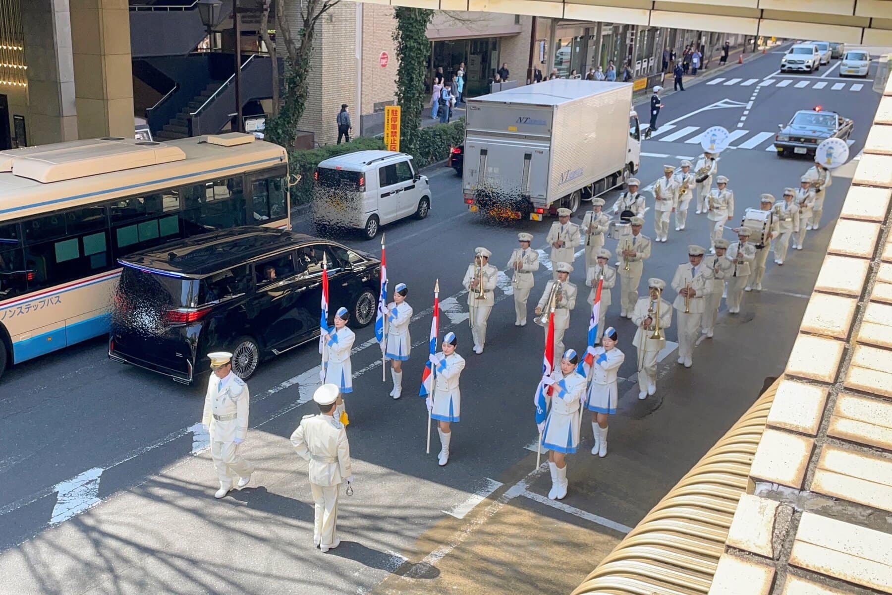 ↑白バイや音楽隊の先導で、駅前通りや山手幹線をパレードしていましたよ〜