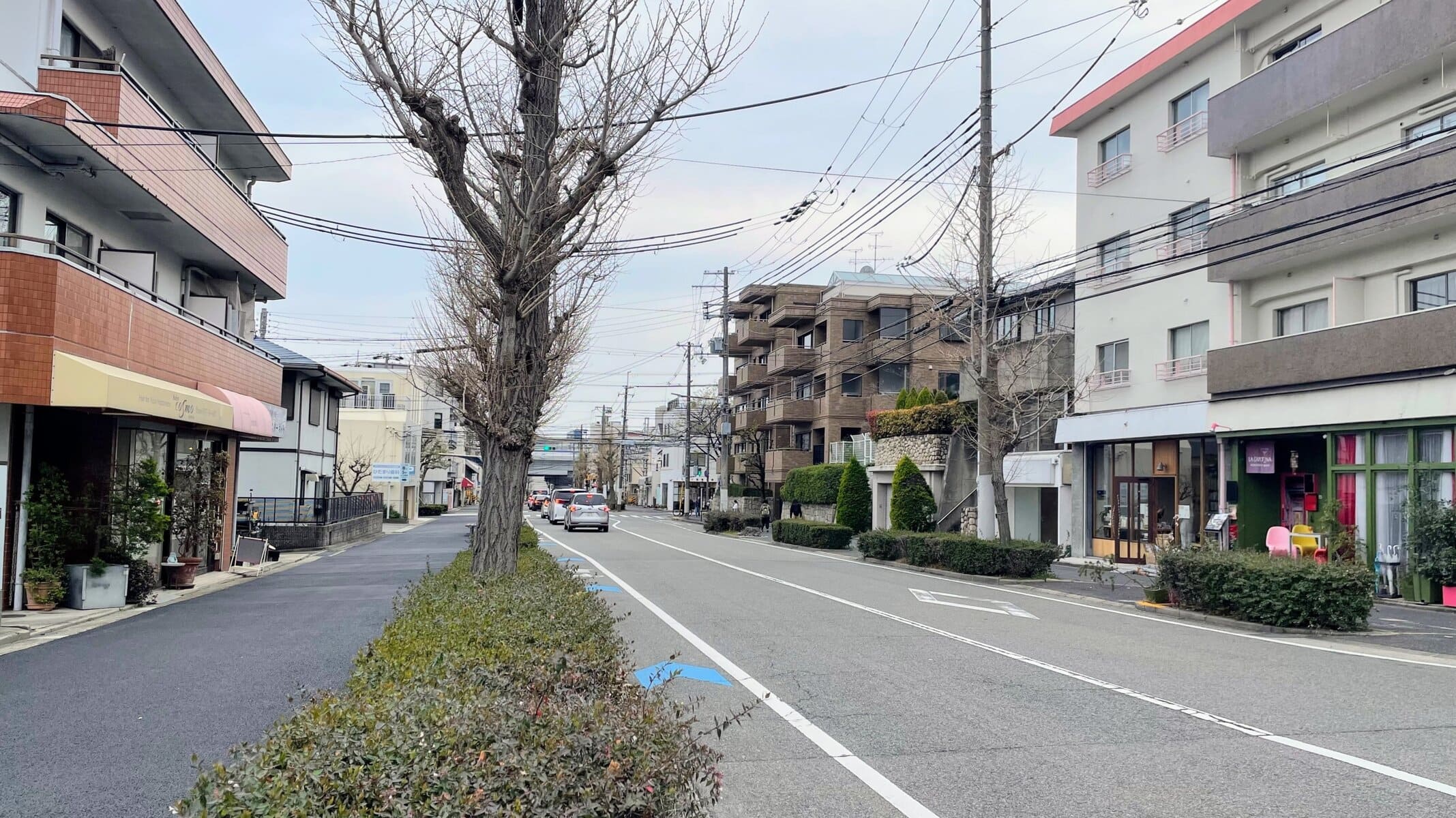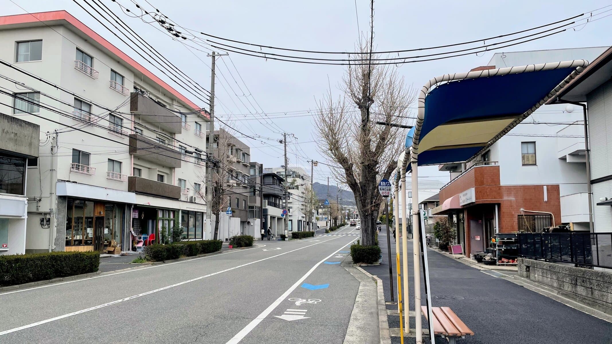 ↑こっち(北)へ行くと、「焼肉ぼんぼん」、「割烹 青柳」、「Double Rainbow ASHIYA for Training & Care」などがあり、国道2号線に出ます。