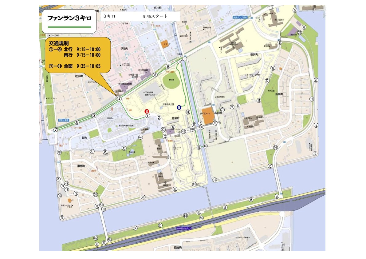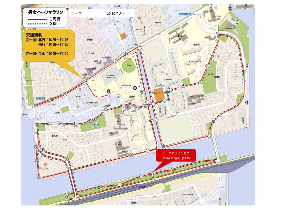 明日4月12日(日)午前9時15分〜11時10分ごろ臨港線や周辺道路の一部マラソン大会「2026芦屋さくらファンラン」のための交通規制が行われるようです〜