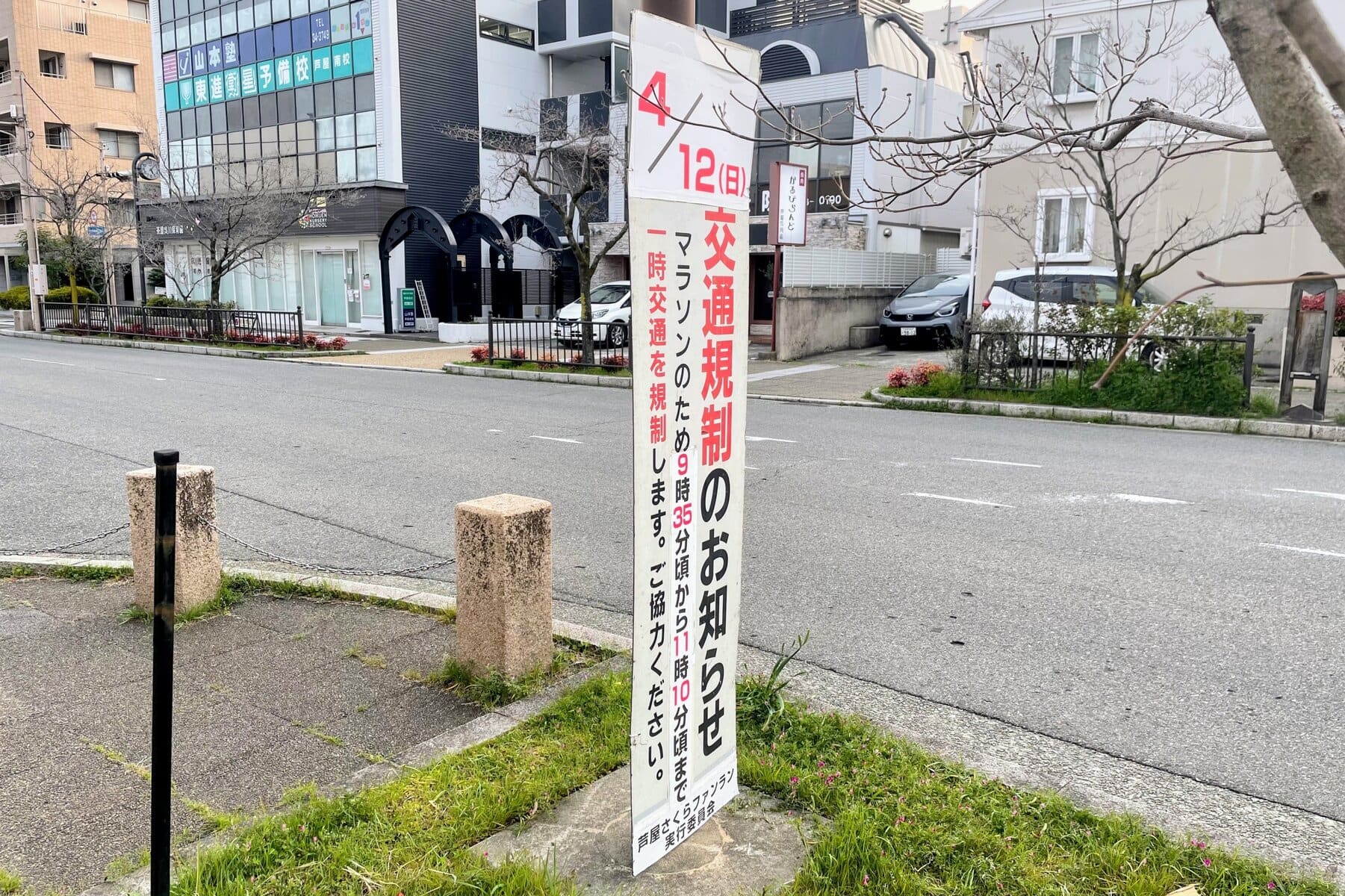 あした4/12(日)は臨港線などの一部道路で交通規制があるみたい。マラソン大会「芦屋さくらファンラン」のため