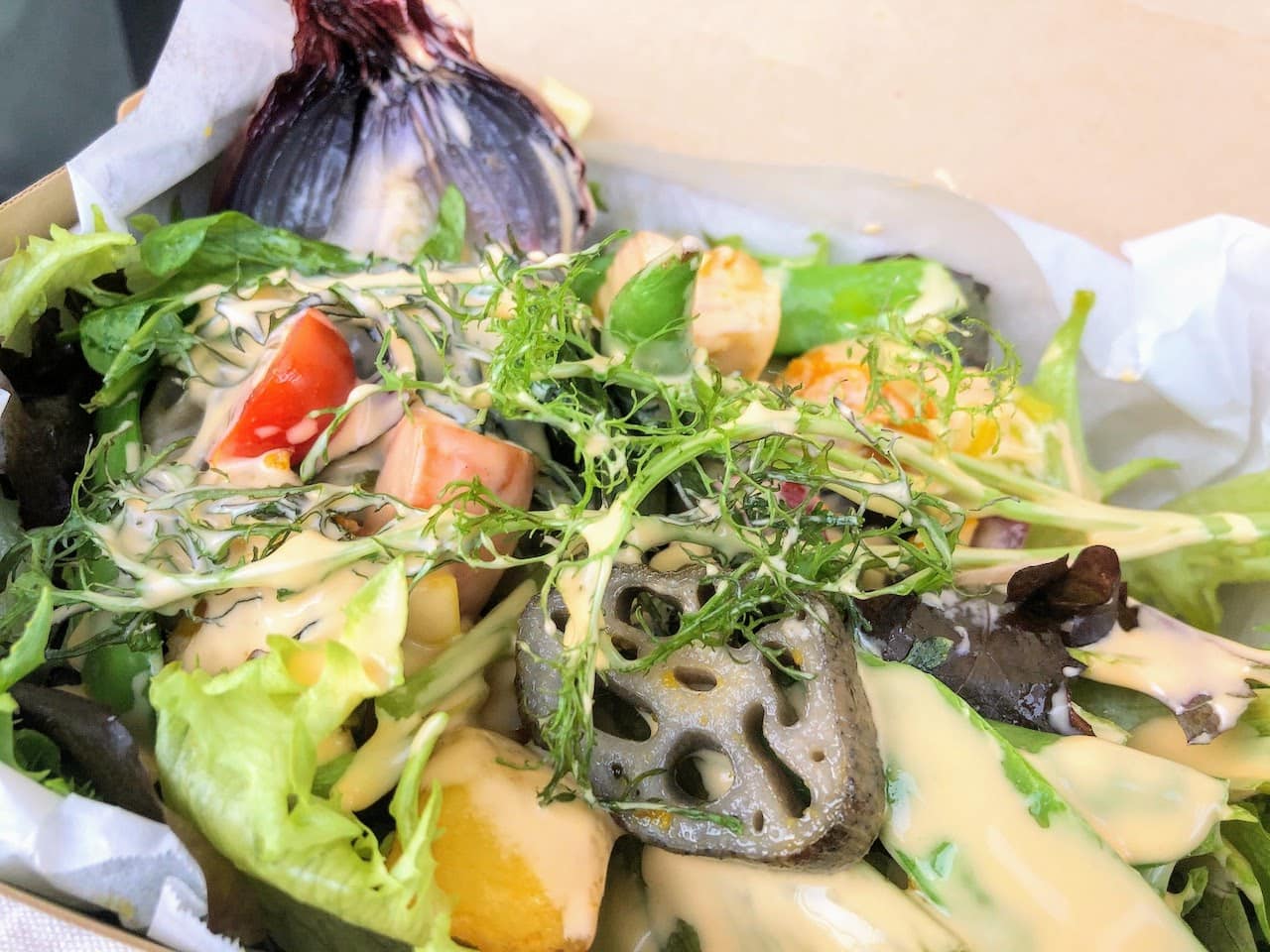 JR芦屋駅近くのアルパ芦屋内にある「自家農園のあるサラダ屋さん ta」でサラダとお惣菜をテイクアウトしました!