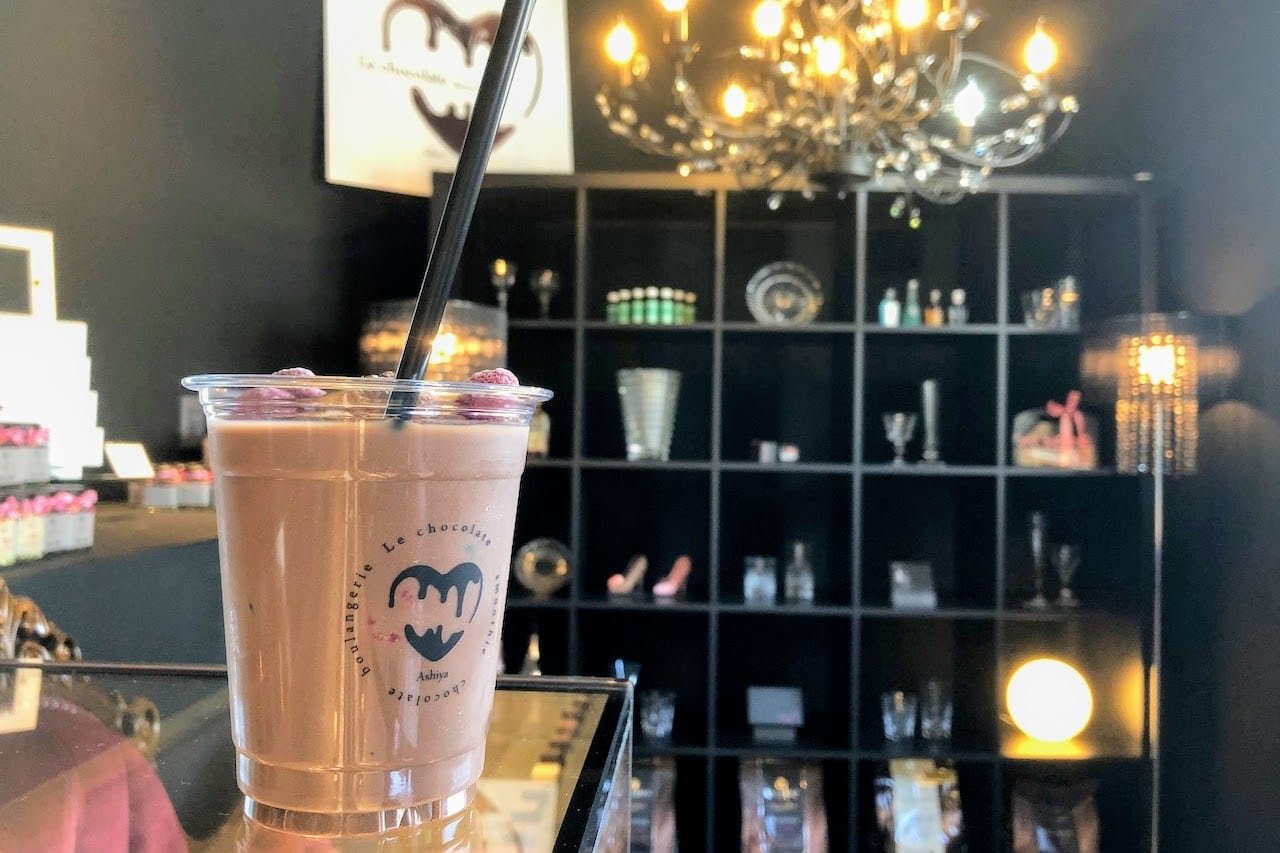 JR芦屋駅近くの2号線沿い、茶屋之町北交差点のあたりにあるチョコレート専門店「Le chocolate(ル・ショコラ) cherry.c」でチョコレートドリンクを販売していたので、飲んでみました!