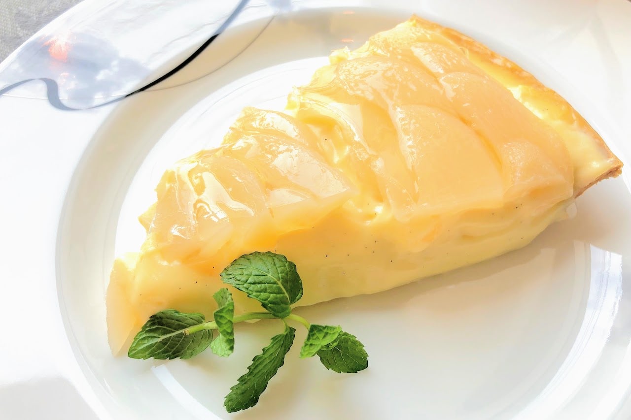 もちろん、桃とカスタードクリームの相性はバッチリ!しっかりめ食感の桃にカスタードが甘く絡んでたまりません。