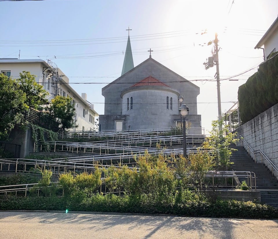 登りきると、カトリック芦屋教会の裏側に着きます。