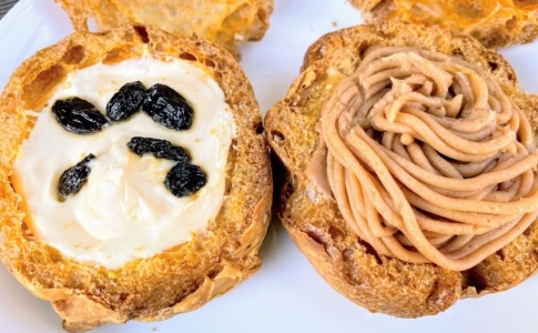 あしつーグルメ阪急芦屋川駅近くのレンタルキッチン「STAGE」で、月1〜2回ほどの頻度で限定販売されている「メレンゲハル」のシュークリームを買ってきました! 「メレンゲハル」のシュークリーム 左「ラムシュー」250円(税込) 右「モン...
