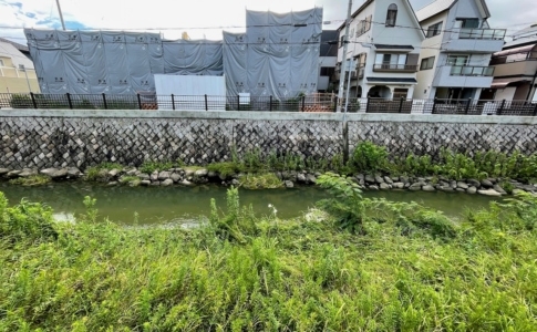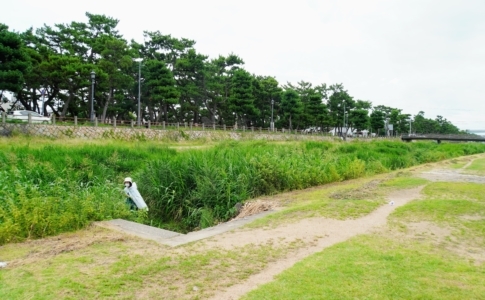 芦屋フォト宮川沿いを歩いていたら、河川敷に一輪だけ百合が咲いてました。 あ、あれは…! 可憐な白百合が一輪! 周辺も歩きましたが、見た限りほかに百合は生えていなくて本当にぽつんと咲いていました。 反対側から見るとこんな感じ。 川辺...