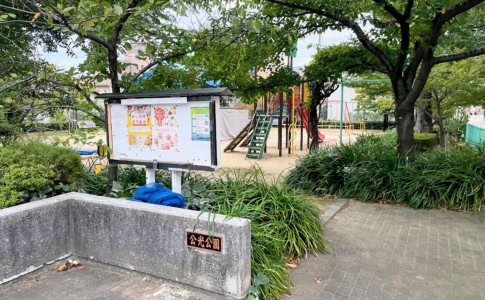 公光町にある「公光公園」の真ん中になんか大きいものが建ってました。 ↑公園の中央、丸い街灯を囲うように何かが建てられています。 ↑まだシートに覆われていますが、結構大きな遊具?ベンチ?みたいなものができそう。 ↑隙間から...